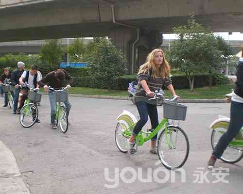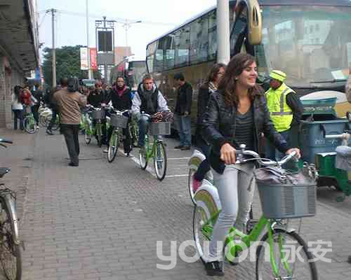 法國旅行團(tuán)騎蘇州公共自行車游蘇州古城區(qū)