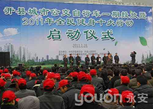 2011年,以“騎自行車出行”為序幕,開縣將以登山、健步走、自行車騎行、體操、健身歌舞、棋牌書畫、釣魚、種養(yǎng)、球類、游泳十大公共健身活動掀開全民健身的熱潮,據(jù)介紹,此舉是開縣打造“千年開州·西部水城”的重要舉措。
